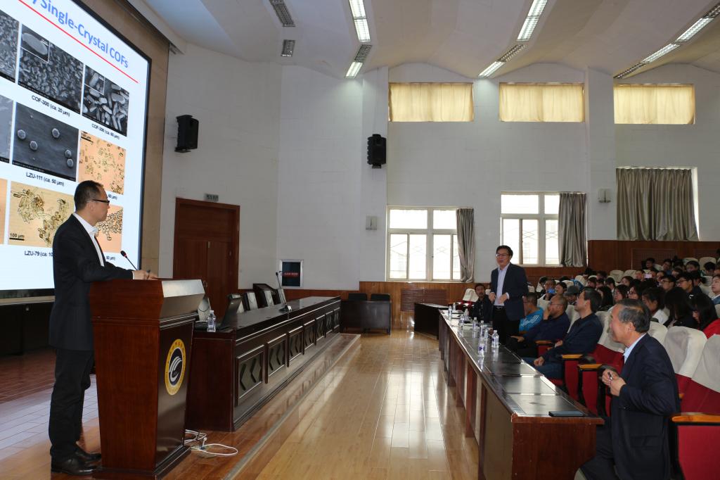 报告围绕共价有机框架材料中有序孔结构的构筑、表征和应用展开。王为教授重点讲述了如何实现结构和功能的“一箭双雕”组装;如何精细表征晶型有序的多孔结构;以及如何实现基于其结构特征的功能化应用。通过以中国古代建筑的榫卯结构连接方式为例,直观的跟师生讲述了分子尺寸下的共价组装及结构-功能体系的精确构筑,使师生对共价组装有机晶型框架材料有了深刻的认识。