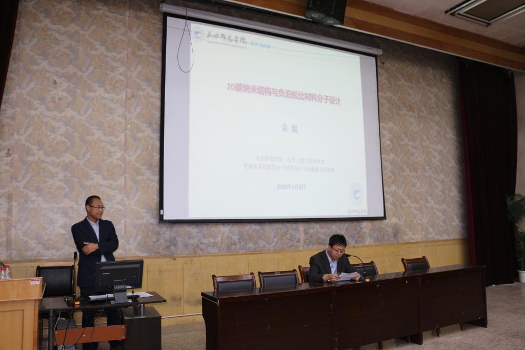 报告由YABO鸭脖官网副院长吕玲玲主持,YABO鸭脖官网老师及学生170余人聆听了报告。袁焜博士从丰富多彩的碳纳米结构的发展历程出发,介绍了负泊松比材料的特征、性能及负泊松比材料分子设计,使师生们对负泊松比材料有一定的认识,引发了同学们的无限思考,拓宽了同学们的知识面,使同学们受益匪浅。