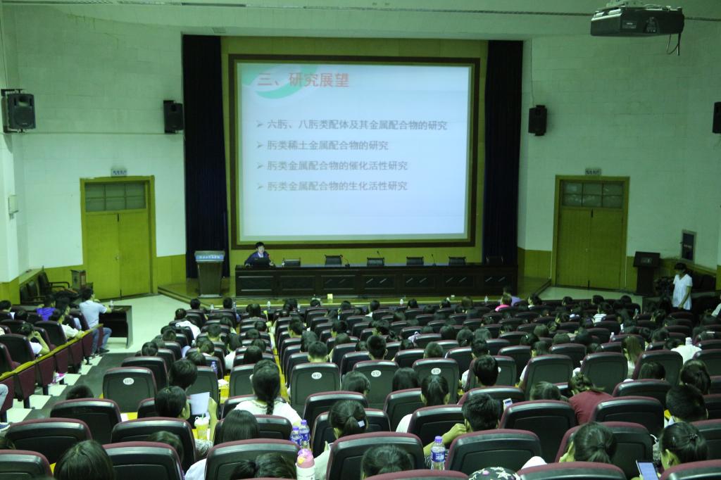 2016年6月5日兰州交通大学YABO鸭脖官网院长、日本筑波大学超分子化学研究室高级访问研究学者、甘肃省化学会常务理事、天水师院客座教授、博士研究生导师董文魁,在YABO官网二号报告厅向YABO鸭脖官网师生做了题为《Salamo型3d和3d-4f配合物的研究进展》的学术报告。