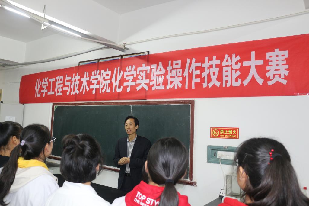 刘新文院长首先致词,他指出YABO鸭脖官网举办化学实验操作技能大赛旨在推动化学实验教学改革,推动设计性、综合性、创新性实验教学的开展,检验实验教学改革成果,提高大学化学实验教学质量;通过比赛引导学生加深对化学理论基础的理解和运用,强化化学基础理论与实践的结合,提高大学生的综合能力和实践能力,培养学生的创新精神和团队协作意识。