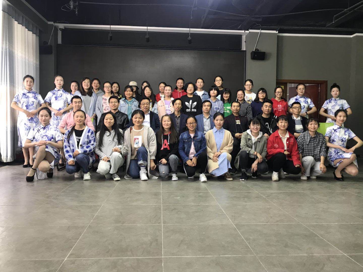 YABO鸭脖官网院长刘新文、党总支副书记雷新有、学校科研管理处副处长刘勍等受邀莅临;鎏滢艺坊外聘指导老师、艺术顾问齐天祥、李琦及鎏滢艺坊全体成员参会约50余人参会。