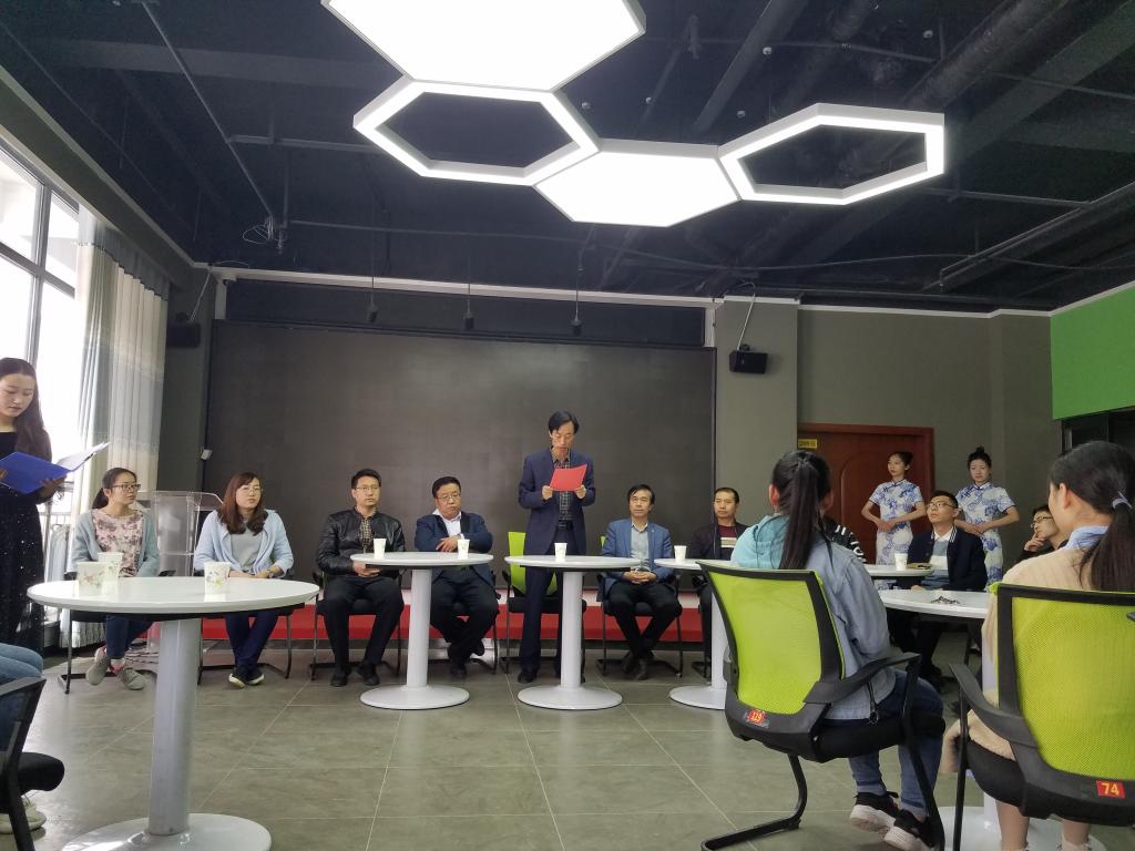 刘勍副处长在讲话中提到:这是园区内首次举行外聘指导教师的受聘、授权仪式,对于鎏滢艺坊的邀请深感荣幸;对鎏滢艺坊提出几点希望:希望学院领导加大对鎏滢艺坊的扶持、指导力度;希望指导老师能够毫无保留地将自身所学全部教给学员。