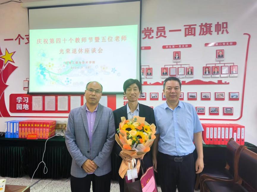 学院领导班子成员和青年教师代表向五位荣退老教师赠送纪念品并献上鲜花!