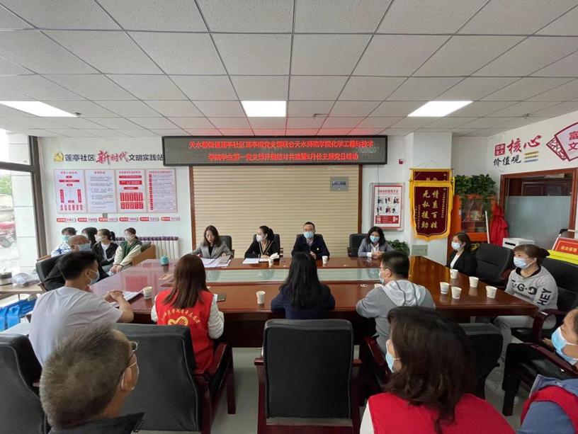 5月10日,YABO鸭脖官网学生第一党支部与天水郡街道莲亭社区莲亭南党支部在天水郡街道莲亭社区会议室联合开展“结对共建聚合力 团结一心同提升”主题党日活动。